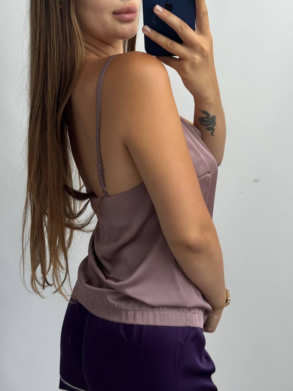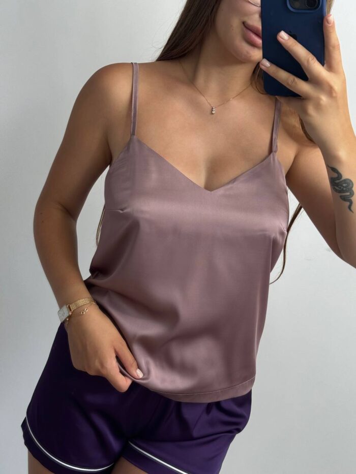 Базова майка у тканині шовк мокко