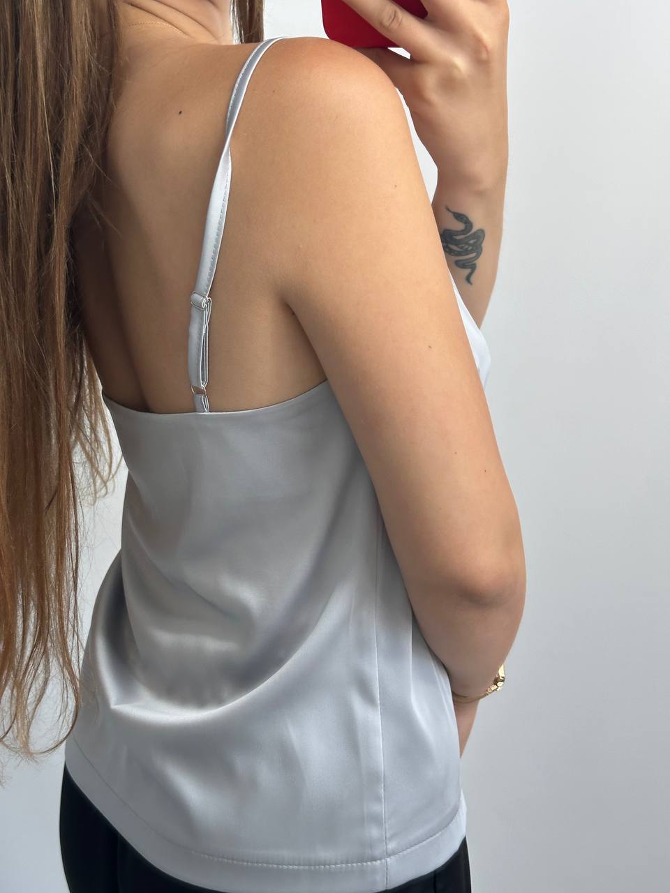 Базова майка у тканині шовк срібло