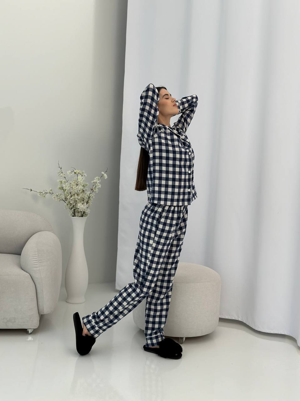 Будьте першим, хто залишив відгук на “Домашній костюм у трендовий клітчастий принт молочна з синім” Скасувати коментар