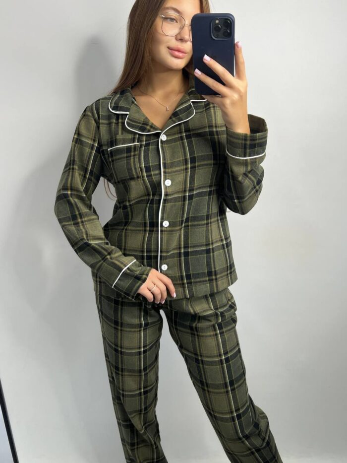 Домашній костюм у трендовий клітчастий принт темно – зелений