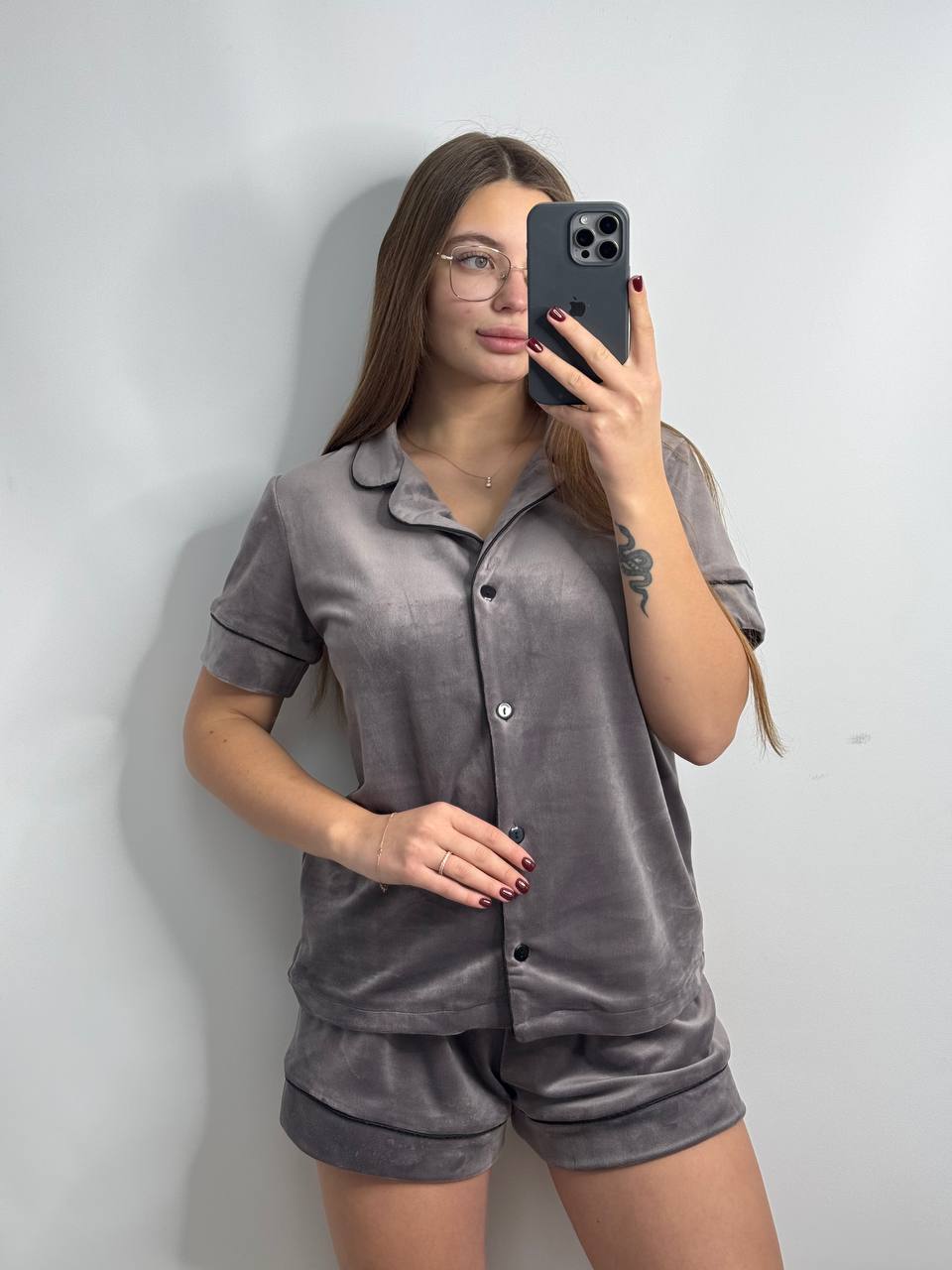 Будьте першим, хто залишив відгук на “Домашній велюровий костюм сорочка на ґудзиках і шорти капучіно чорний кант” Скасувати коментар