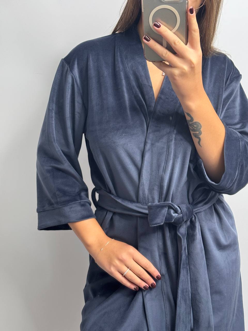 Довгі халати фіксуються на зав’язках зсередини та мають бретельки для зовнішнього фіксування поясом ☝️ Халат має широкий рукав 3/4, який робить дану модель оригінальною та стильною 😻
