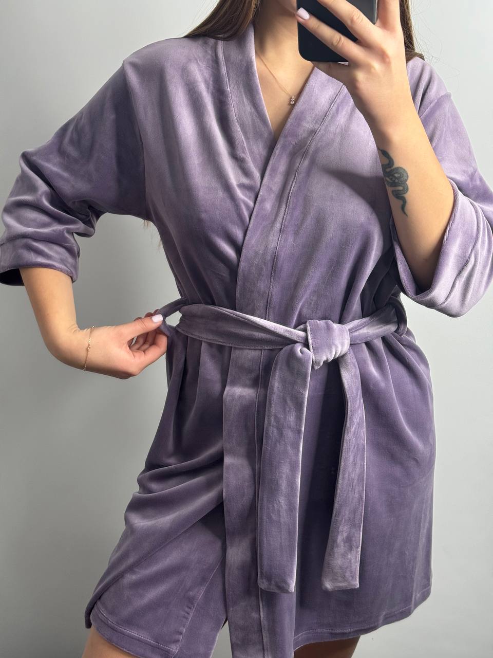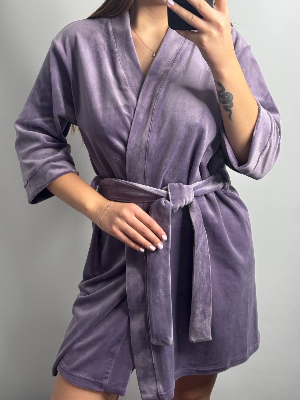 Довгі халати фіксуються на зав’язках зсередини та мають бретельки для зовнішнього фіксування поясом ☝️ Халат має широкий рукав 3/4, який робить дану модель оригінальною та стильною 😻