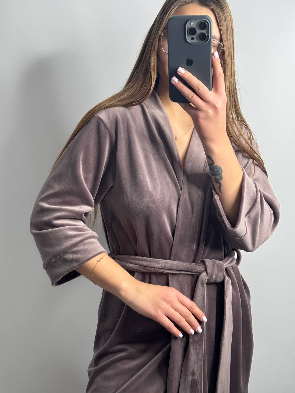 Довгі халати фіксуються на зав’язках зсередини та мають бретельки для зовнішнього фіксування поясом ☝️ Халат має широкий рукав 3/4, який робить дану модель оригінальною та стильною 😻
