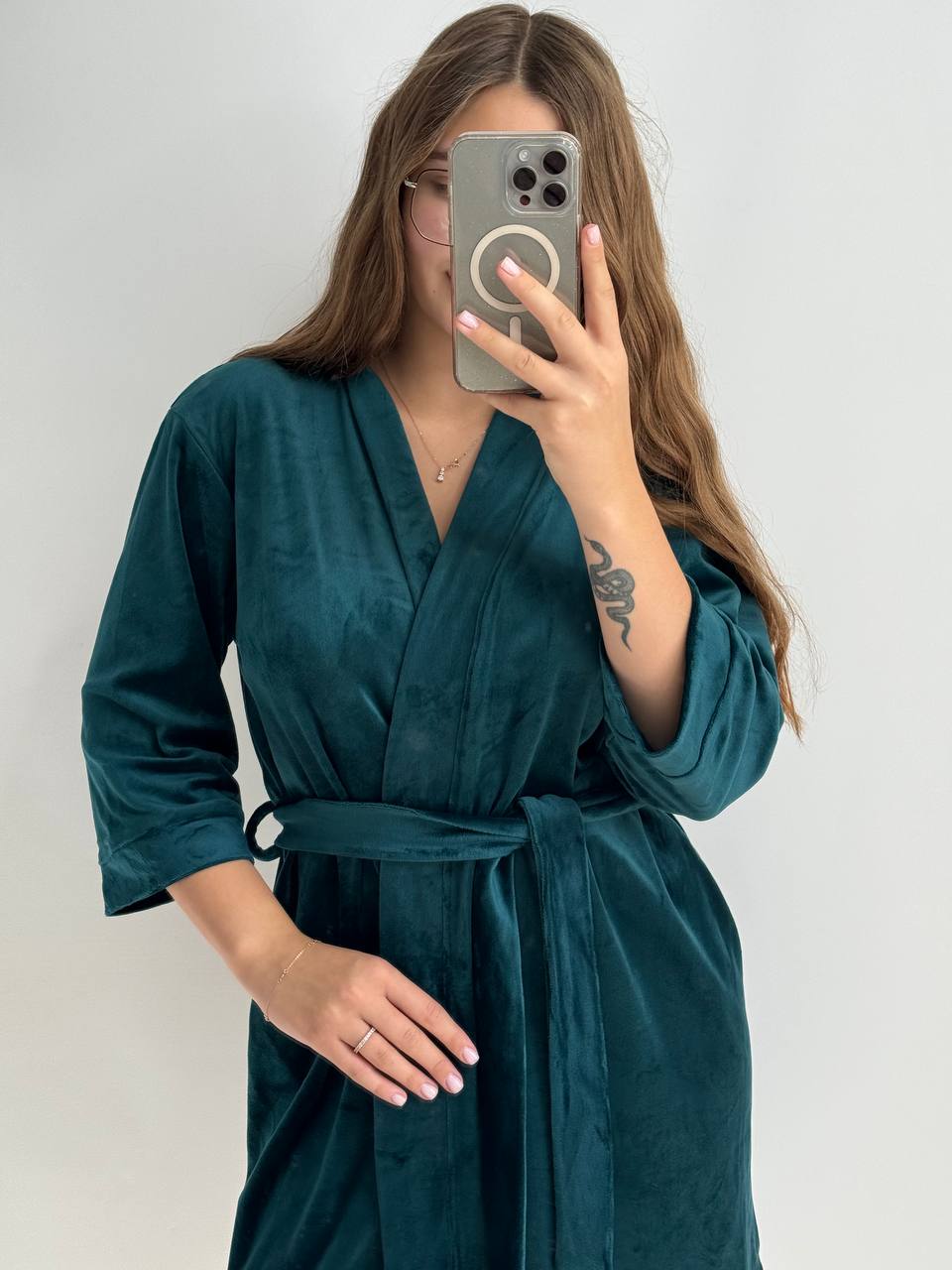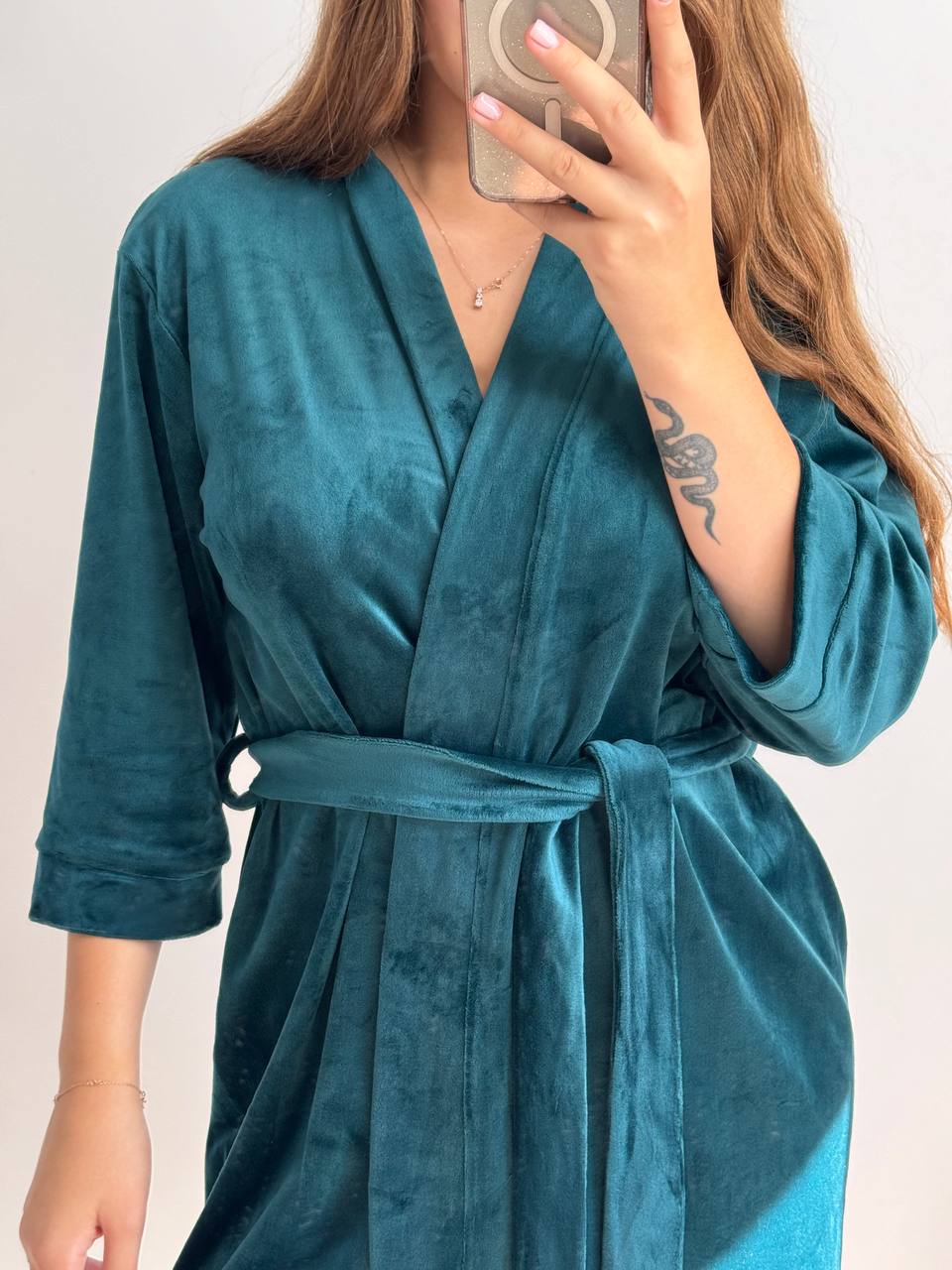 Довгі халати фіксуються на зав’язках зсередини та мають бретельки для зовнішнього фіксування поясом ☝️ Халат має широкий рукав 3/4, який робить дану модель оригінальною та стильною 😻