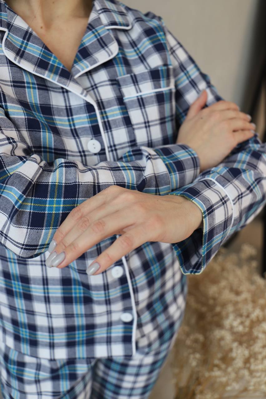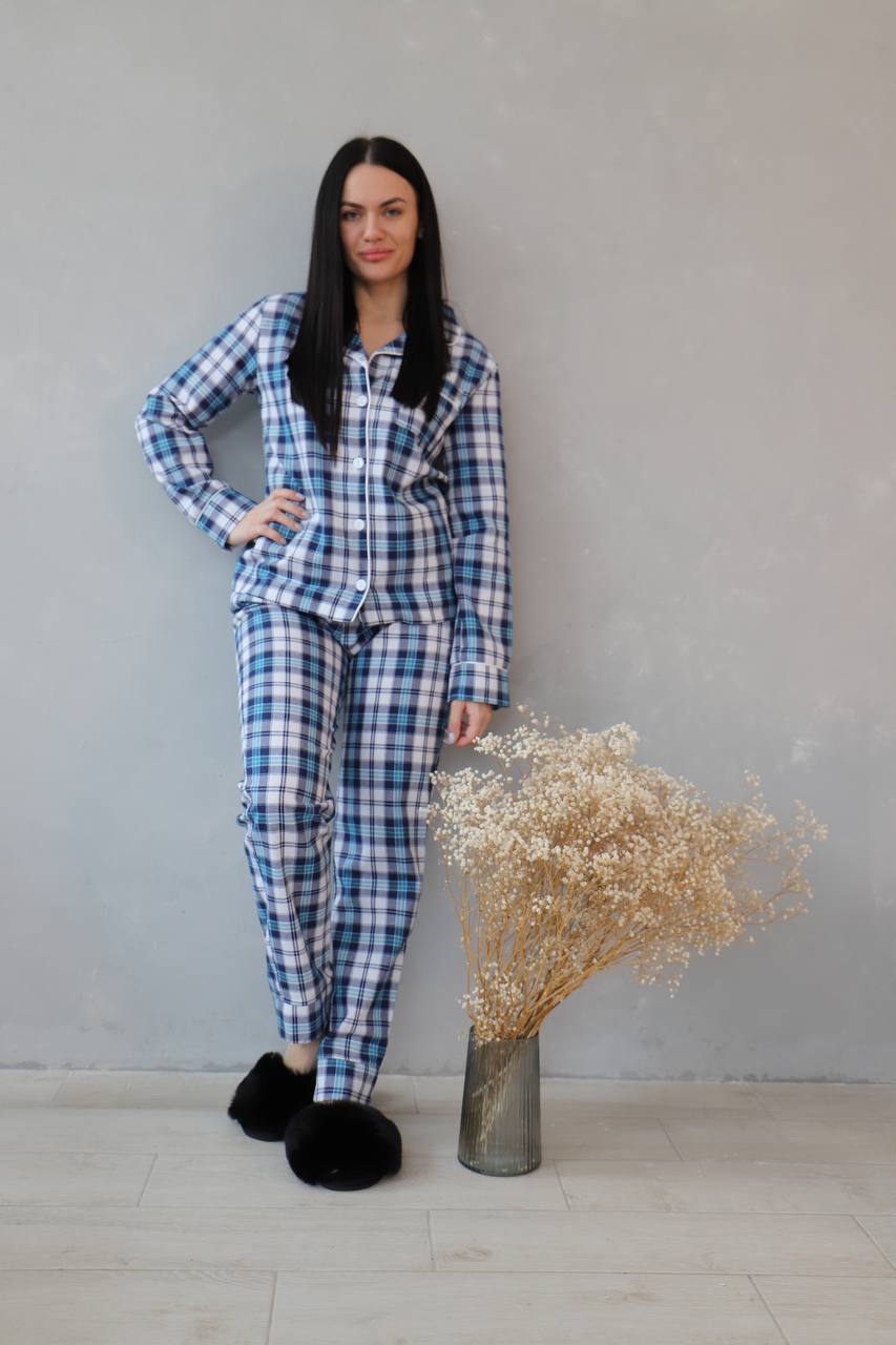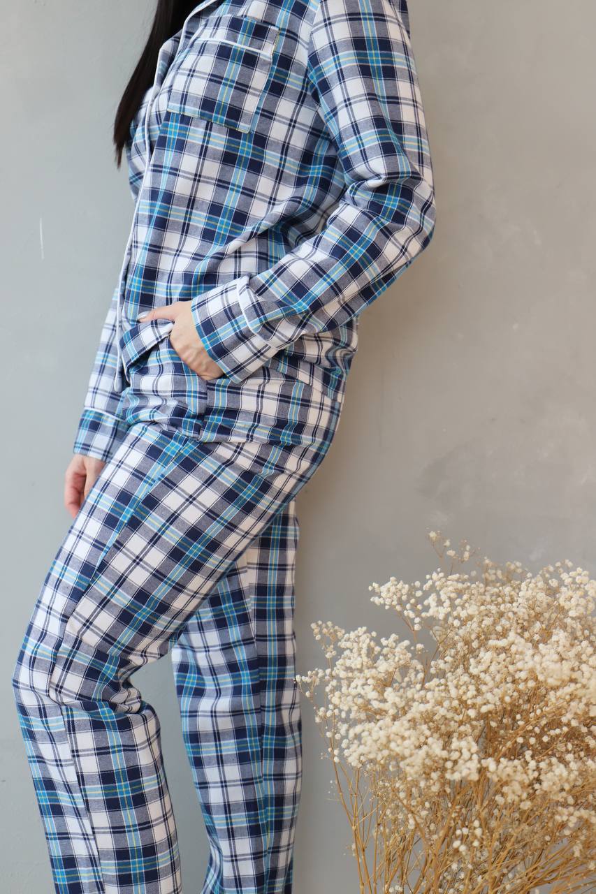Домашній костюм у трендовий клітчастий принт біло-синій