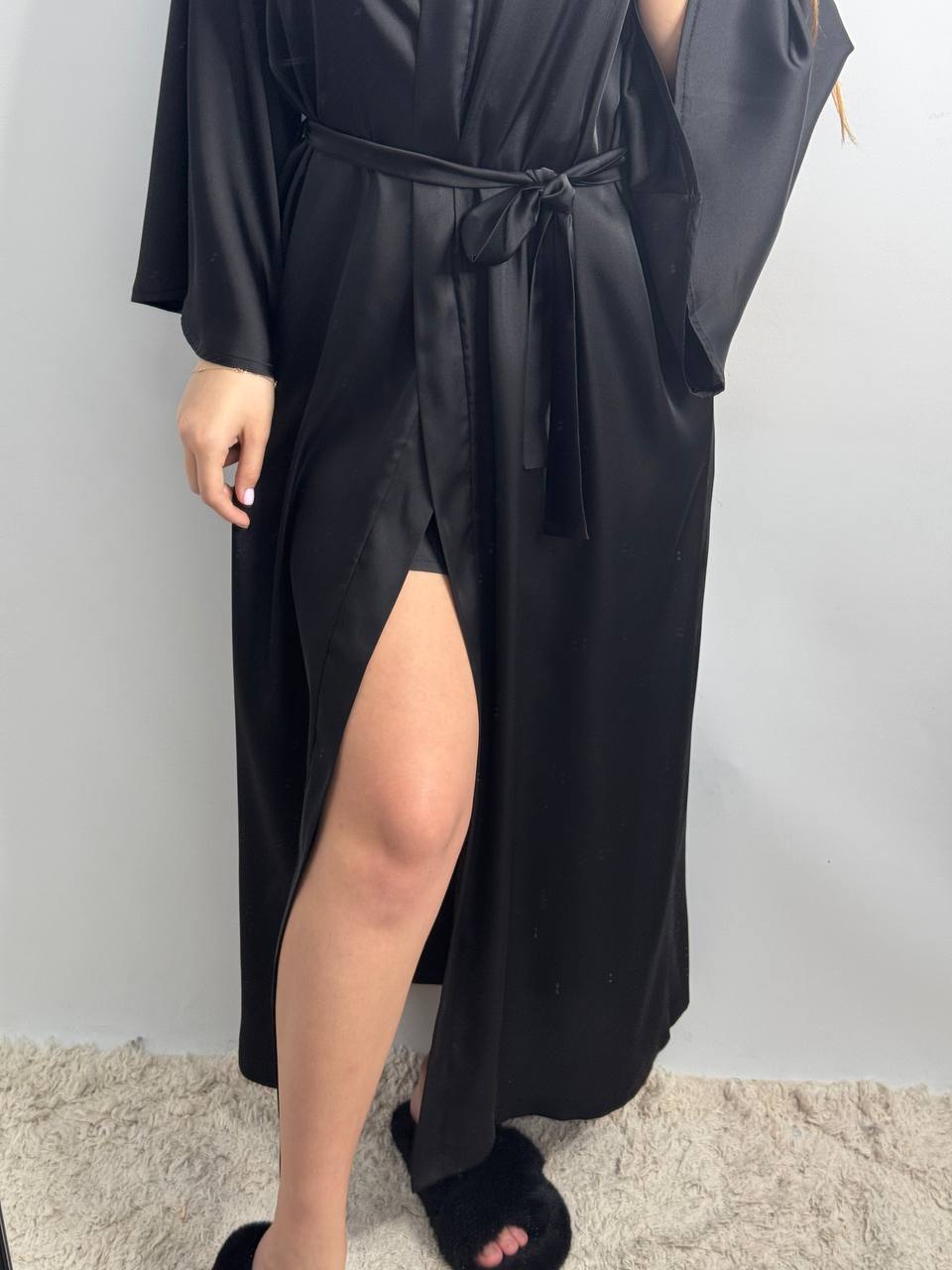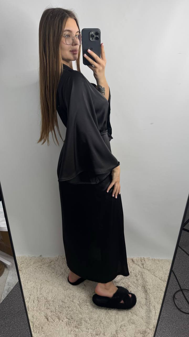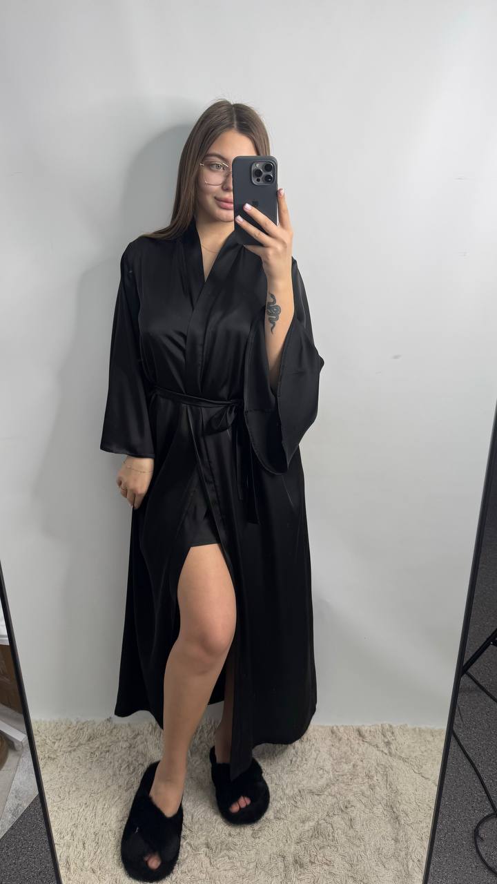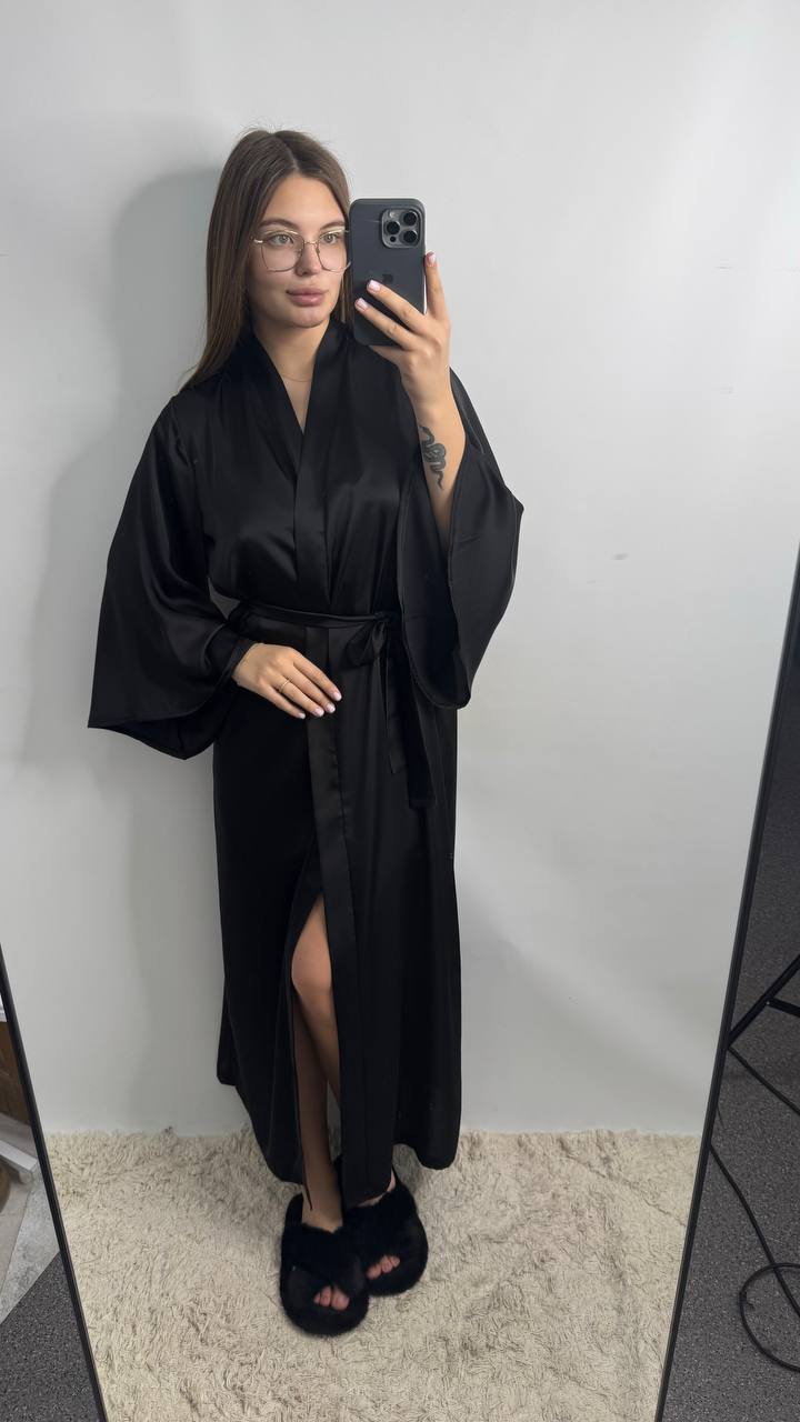 Довгий шовковий халат чорний