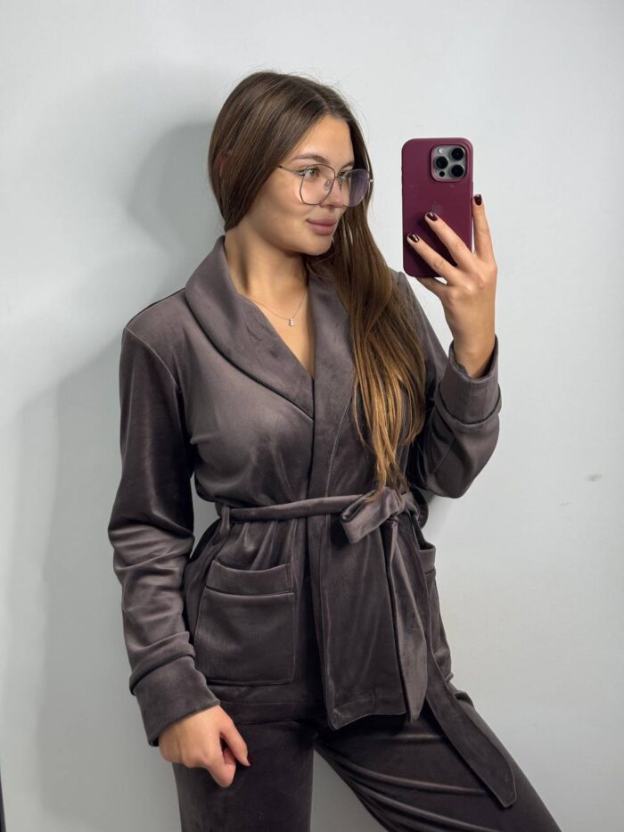 Костюм велюровий шаль шоколад чорний кант
