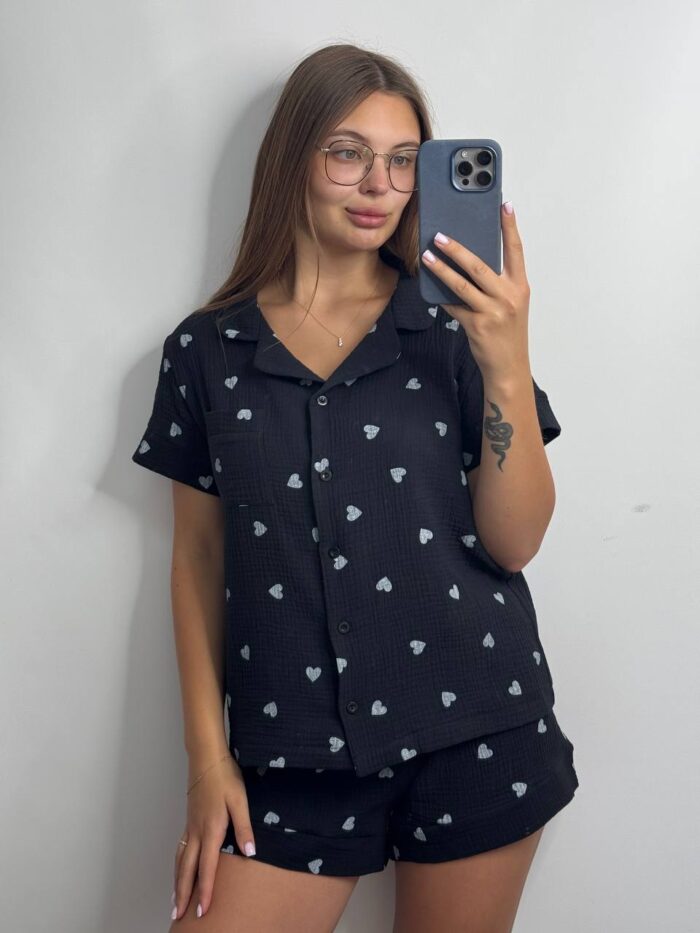 Муслін 1-ка (рубашка з коротким рукавом +шорти) чорний