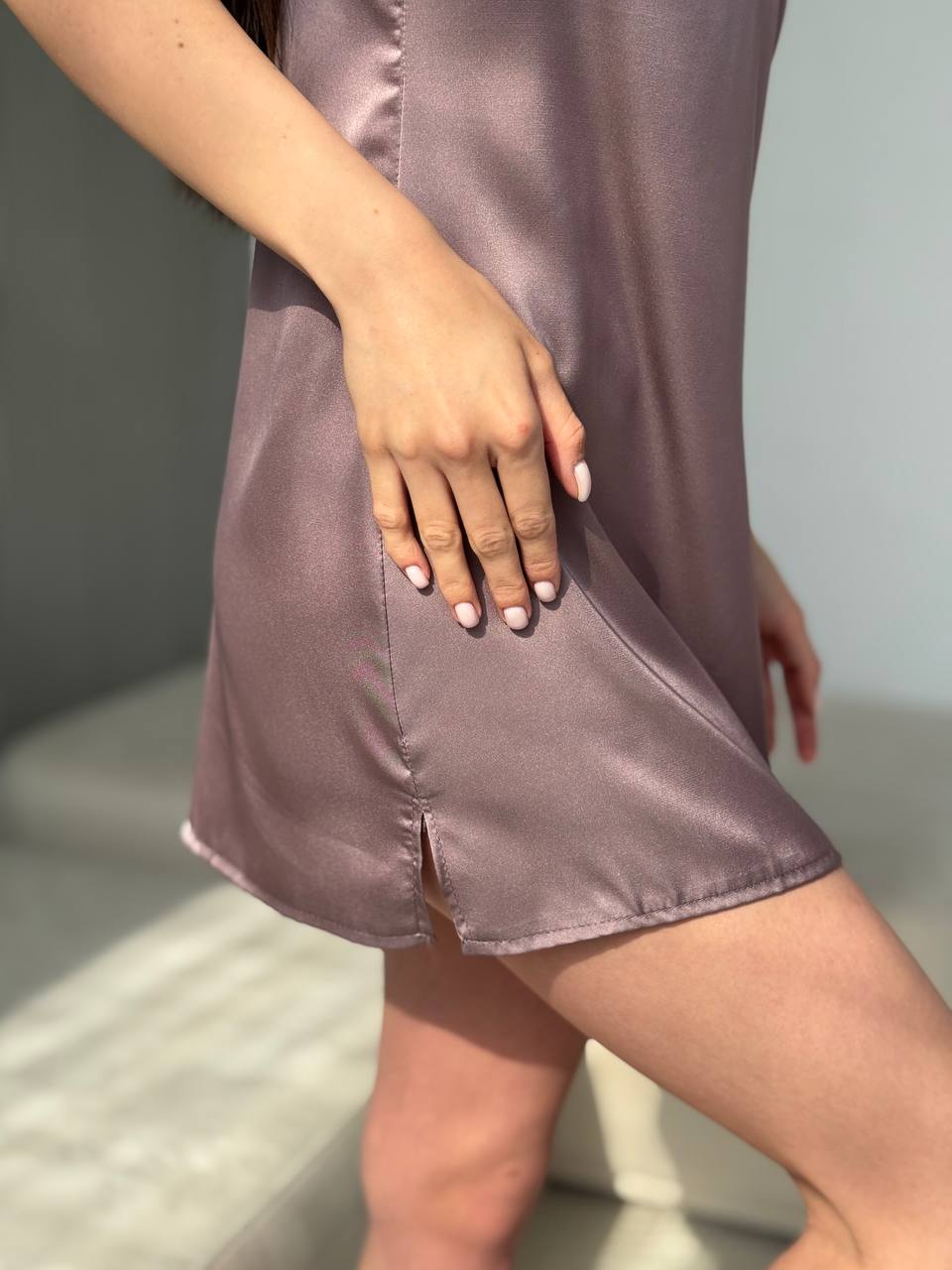 Нічна сорочка з ніжної шовкової тканини мокко