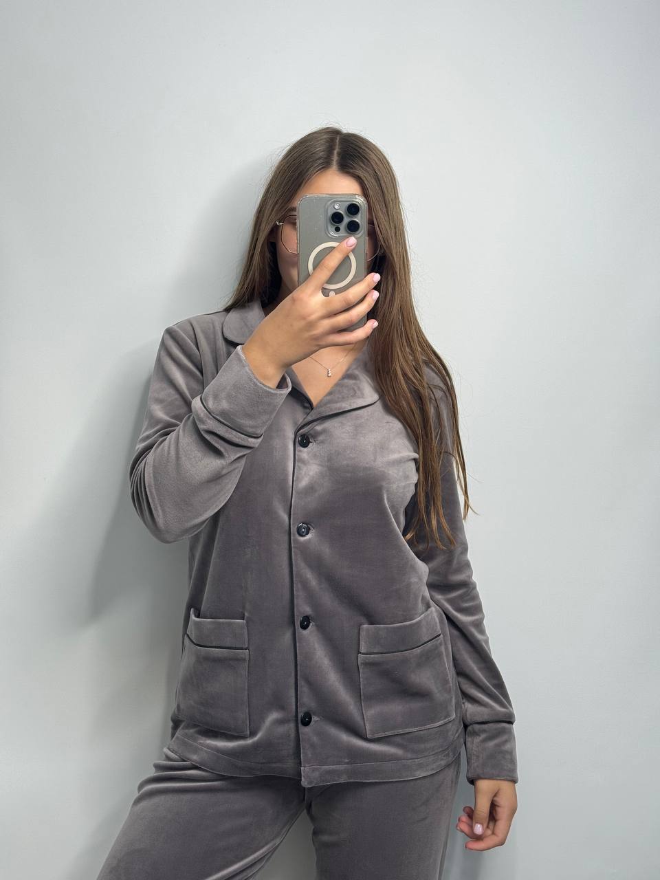 Плюшева піжама на ґудзиках з довгим рукавом і двома кишенями – ідеальний вибір для затишних вечорів та комфортного відпочинку вдома. М’який плюш дарує тепло й ніжність, а класичний крій підкреслює елегантність.Відтінок капучіно асоціюється із затишком і теплом, як ранкова кава. І також доступна у багатьох інших кольорах.