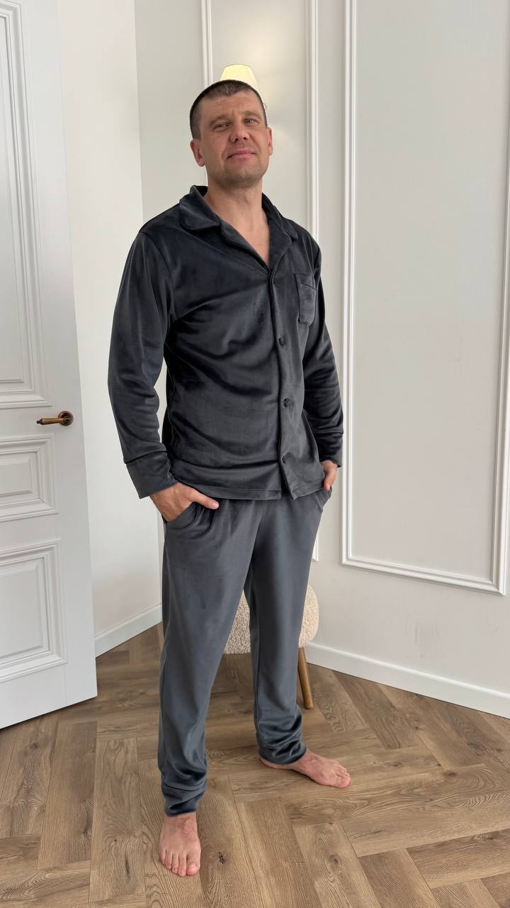 Чоловіча піжама з плюшу на ґудзиках — м’яка, тепла та комфортна для вечірнього
