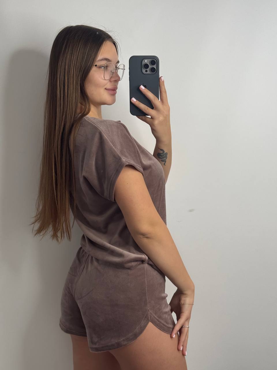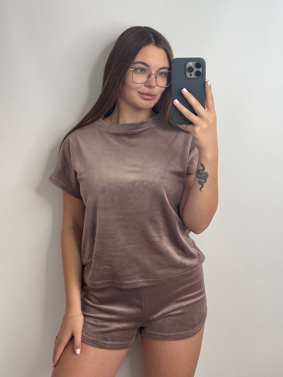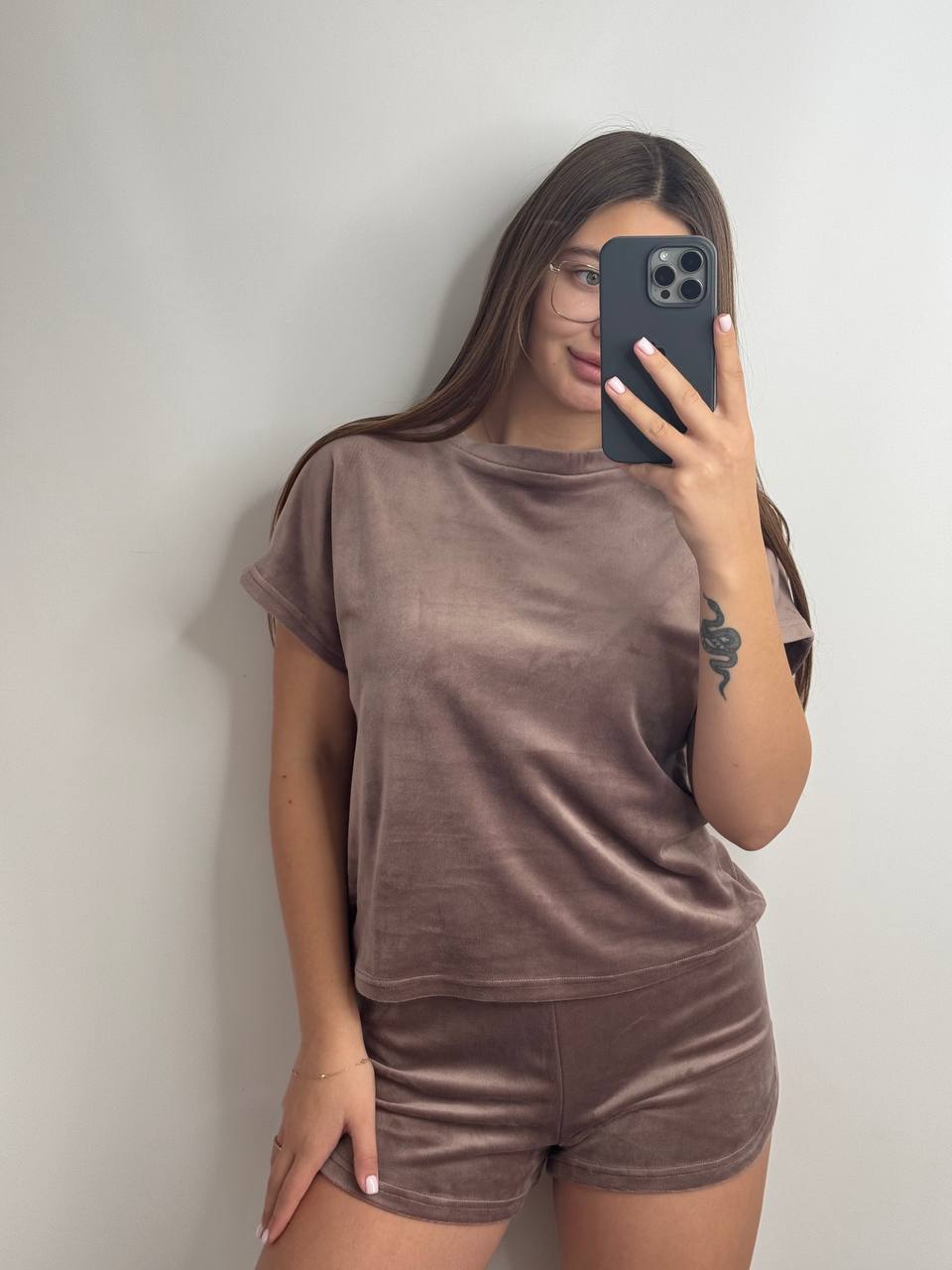 Плюшева піжама двійка | Футболка | Шорти капучіно