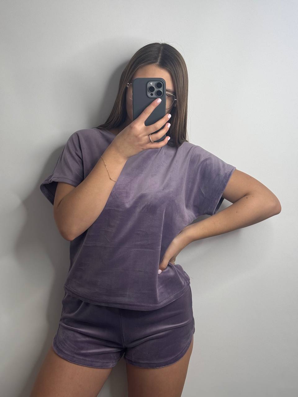 Плюшева піжама двійка | Футболка | Шорти ліловий