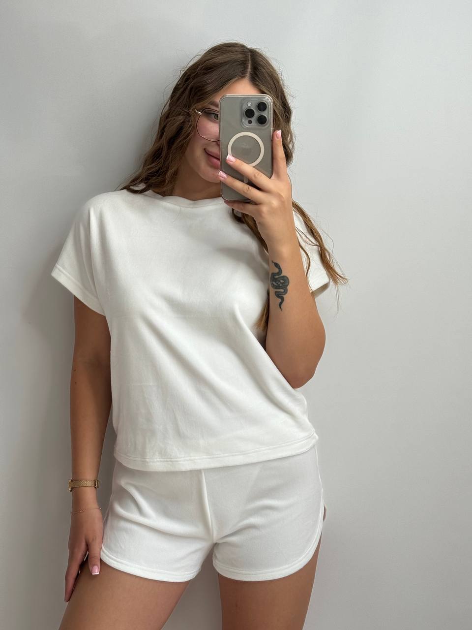 Плюшева піжама двійка | Футболка | Шорти молочний
