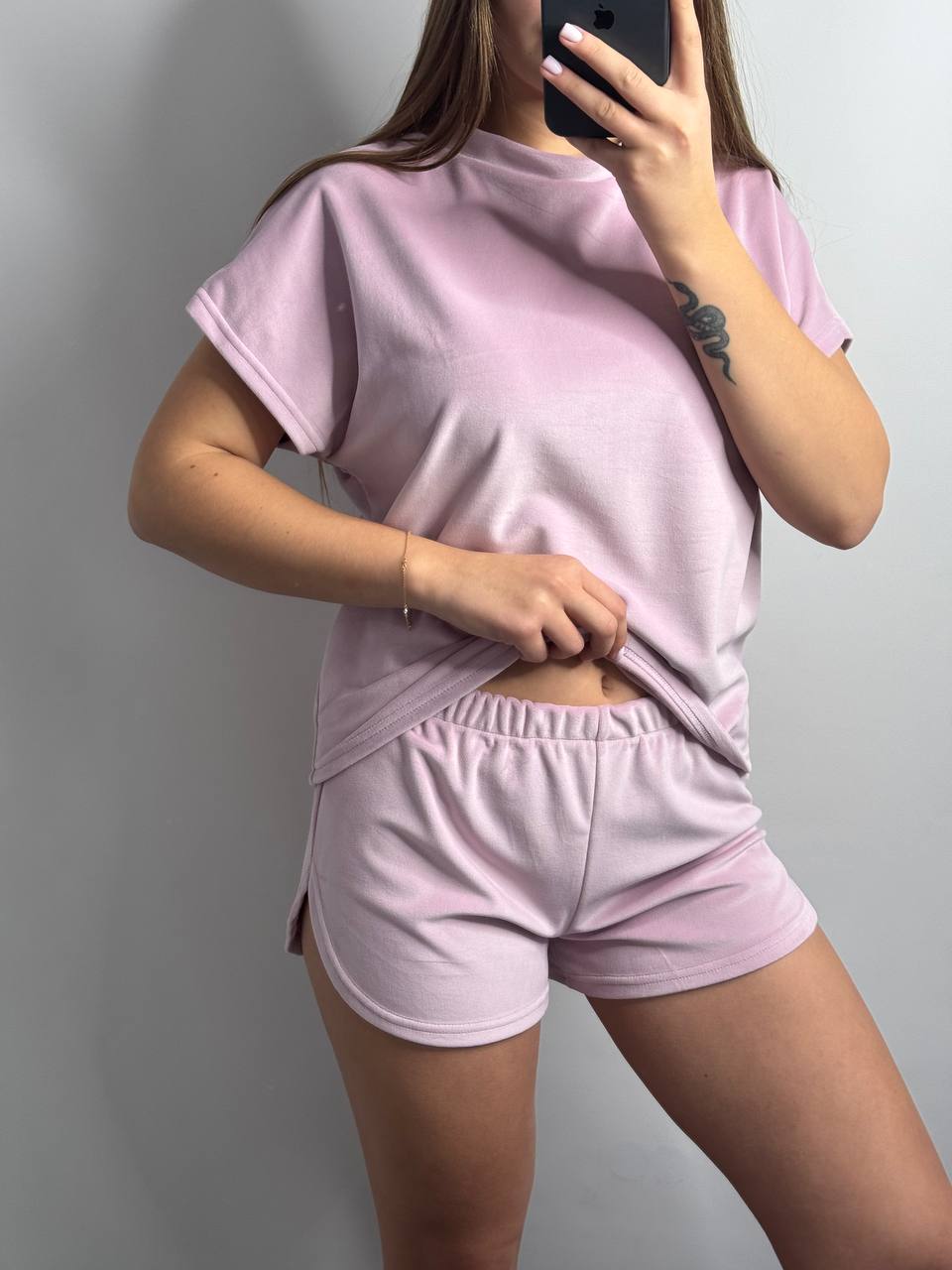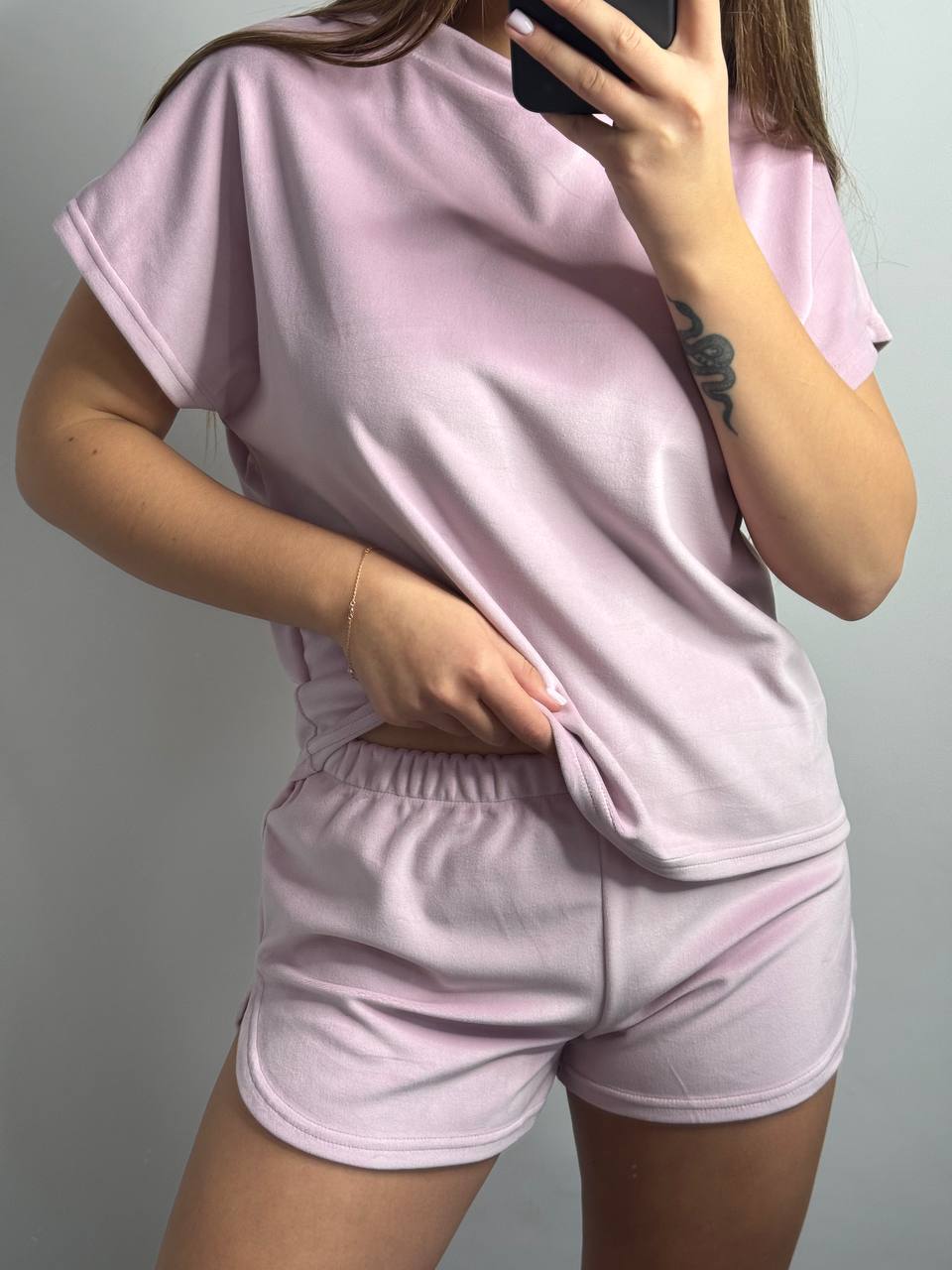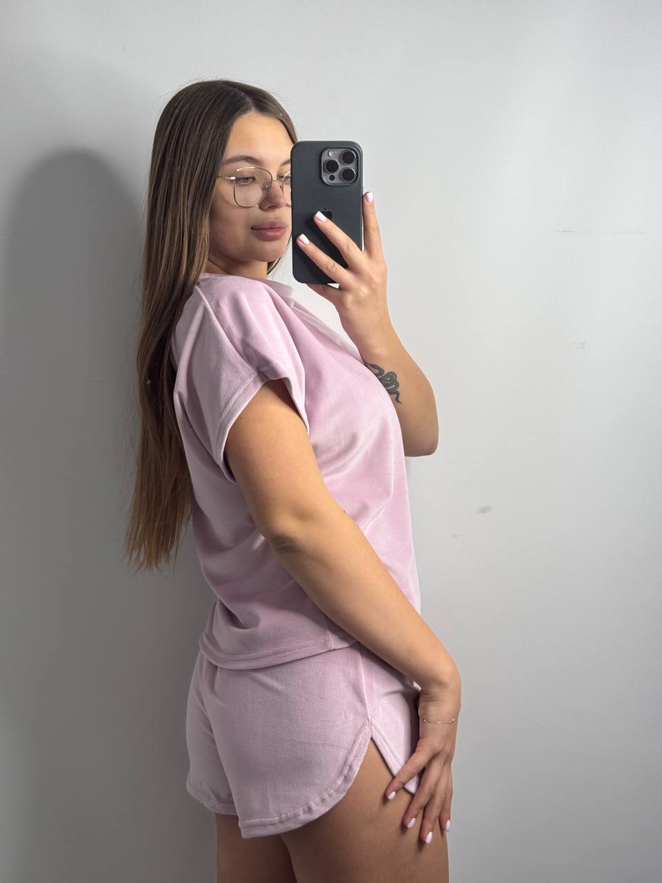 Плюшева піжама двійка | Футболка | Шорти рожевий