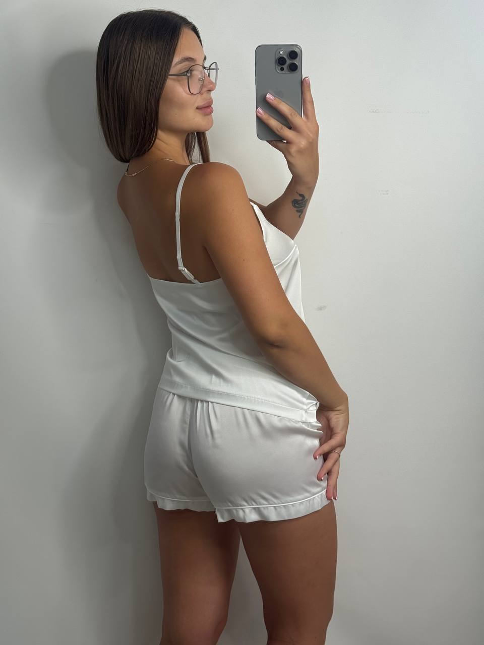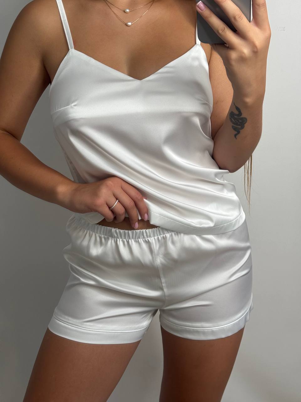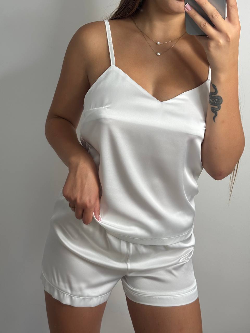 Шовкова піжама майка і шорти айворі