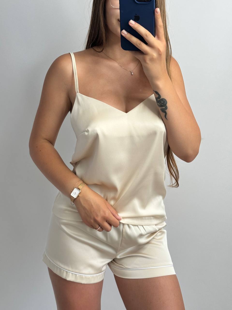 Шовкова піжама майка і шорти молочний