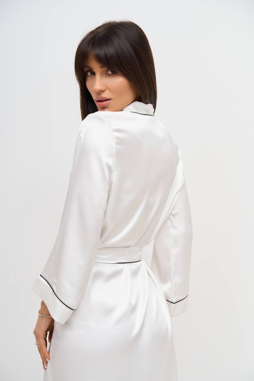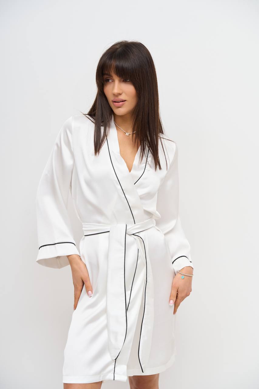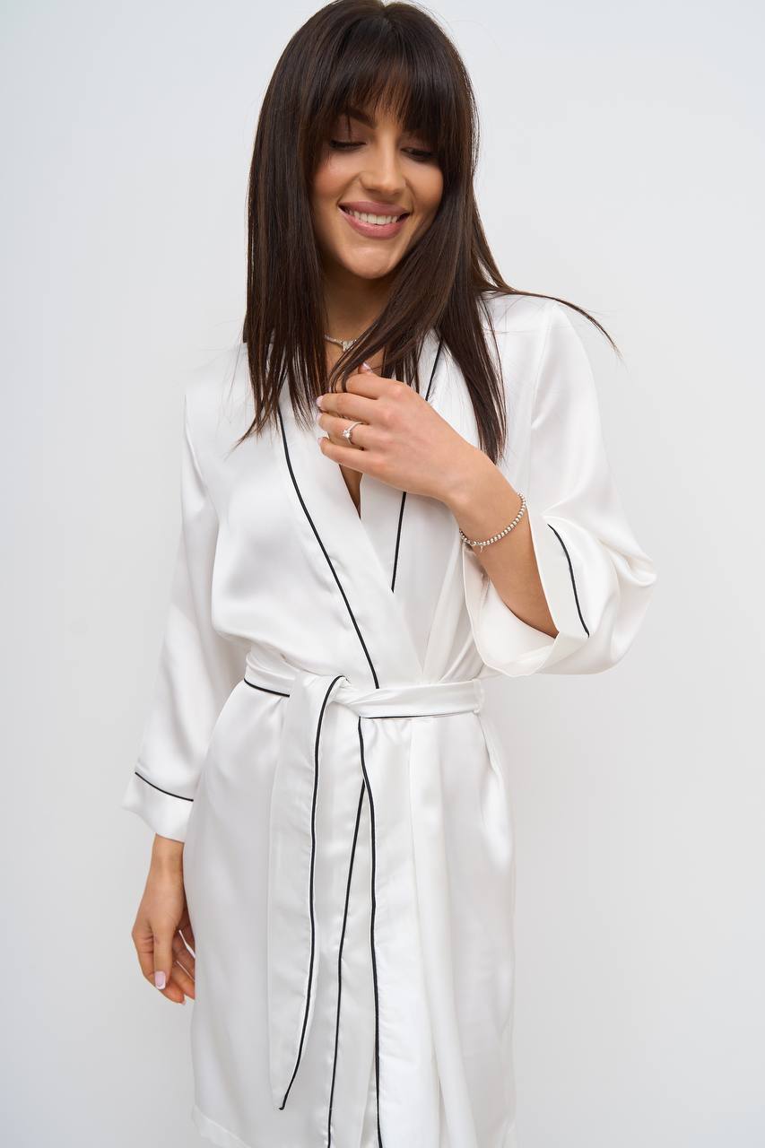 Стильний шовковий халат айворі чорний кант