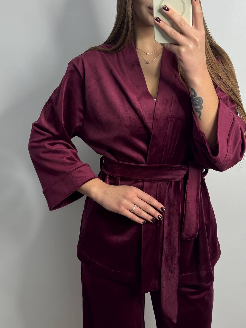 Вишуканий домашній костюм на запах бордовий — брендовий одяг від українського виробника Pijamlook. Це вишукана базова модель, яка стане основою вашого домашнього гардеробу. Одяг приємний на дотик, легкий в догляді та довговічний. Оберіть образ для всієї родини!