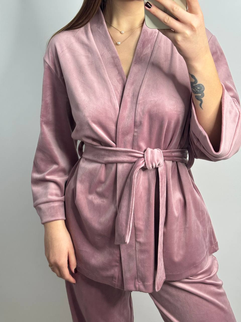 Вишуканий домашній костюм на запах рожева пудра — брендовий одяг від українського виробника Pijamlook. Це вишукана базова модель, яка стане основою вашого домашнього гардеробу. Одяг приємний на дотик, легкий в догляді та довговічний. Оберіть образ для всієї родини!